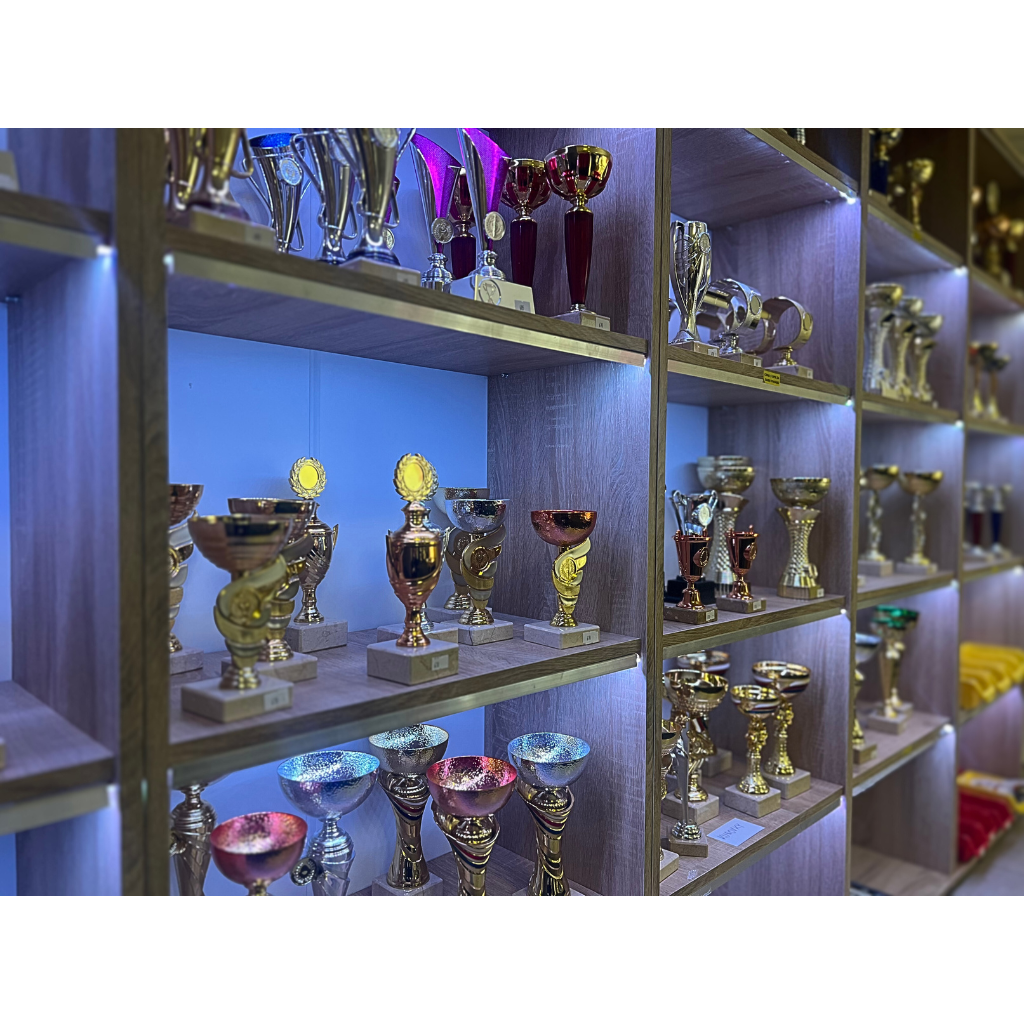 Na naší prodejně máme možnost výběru z více než 100 druhů pohárů, připravené ihned k odběru. Na počkání také tiskneme štítky na poháry.
