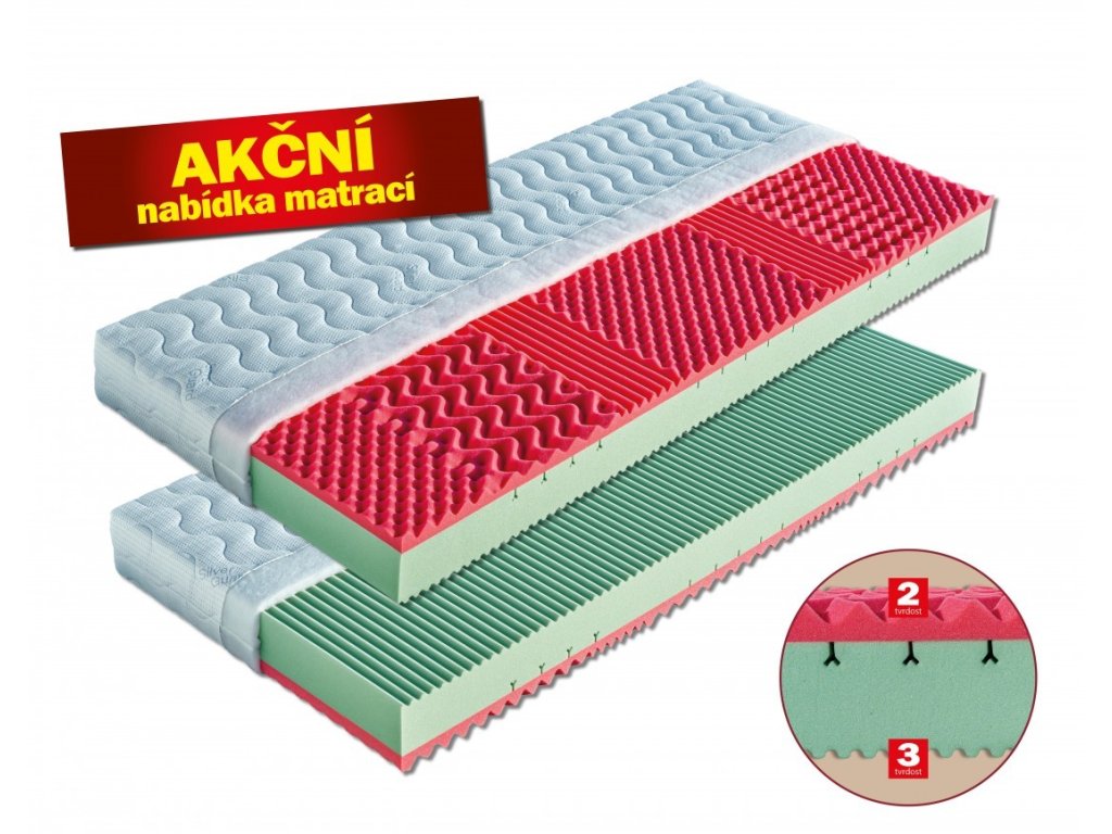 Jádro matrace tvoří vysoce gramážní a velmi elastická hráškově žíhaná pěna MediFoam (38 kg/m³), která je v místech největšího zatížení změkčena speciálními zářezy ve tvaru „Y“. Jemná masážní profilace druhé strany matrace přispívá k uvolnění napjatého svalstva a k provzdušnění matrace. Vrchní červená strana je tvořena antibakteriální pěnou s úpravou Sanitized (32 kg/m³), která poskytuje trvalou a účinnou ochranu proti bakteriím, roztočům a plísním. Její tvarování do masážních nopů napomáhá provzdušnění prostoru mezi povrchem matrace a potahovou látkou. Matrace je vhodná pro alergiky. Může být položena na všechny typy roštů.